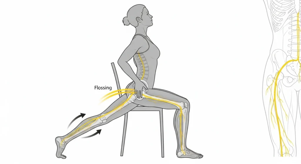 Nerve flossing should feel like mild tension not sharp, shooting pain. If it makes your symptoms significantly worse, stop and consult a physical therapist. This exercise works best in the sub-acute or chronic phase of sciatica, not during a severe acute flare when the nerve is highly inflamed.