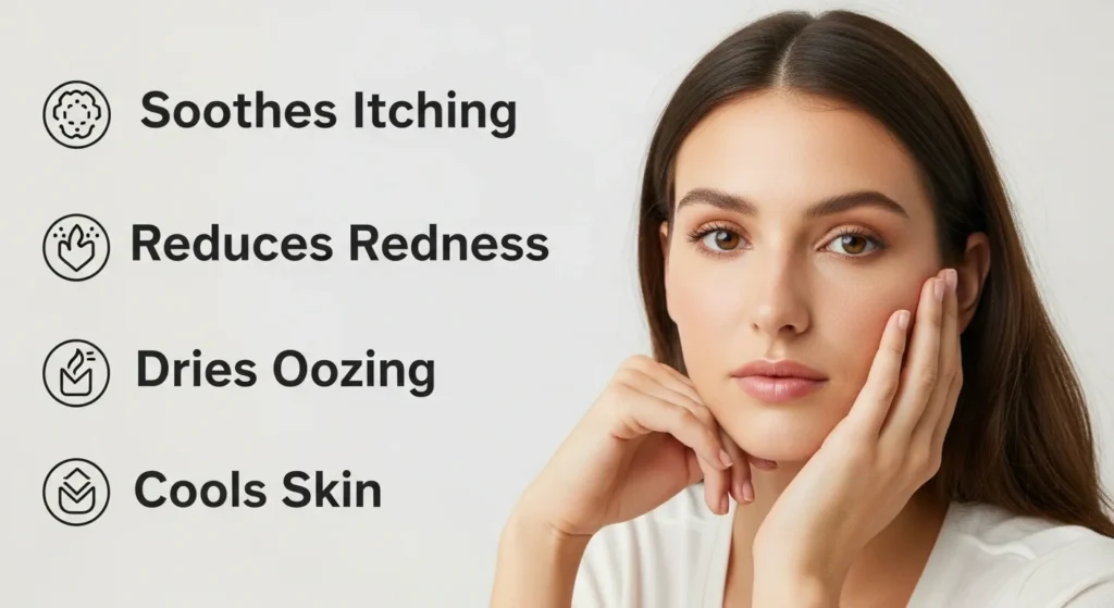 There are several ways Calamine Lotion is able to heal and soothe skin: