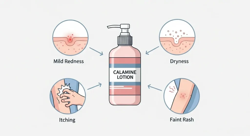 - Excessive drying / skin flaking – Because calamine works by absorbing moisture and creating a drying effect, over-application (or very frequent use) may overly dry the surrounding healthy skin, which in turn can lead to increased itchiness or small cracks.
