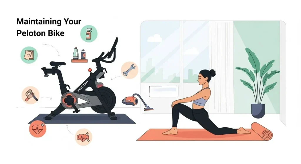Monthly Maintenance Check Once a month, dust and vacuum around the bike, inspect pedals and hardware, and make sure everything feels secure. Use a microfiber cloth with a gentle screen cleaner for clear visibility. Peloton’s new Care App (2025) can now send personalized reminders for maintenance tasks.